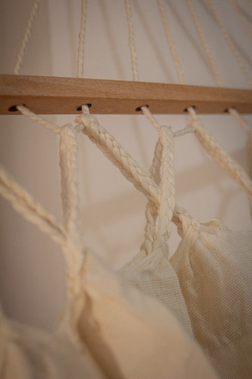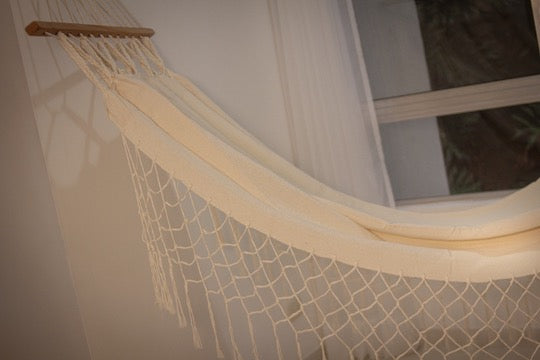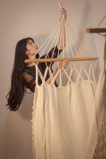 - Color: El tono crudo corresponde al color natural del algodón sin tintes. Si deseas personalizar tu hamaca con otros colores, no dudes en escribirnos por WhatsApp.