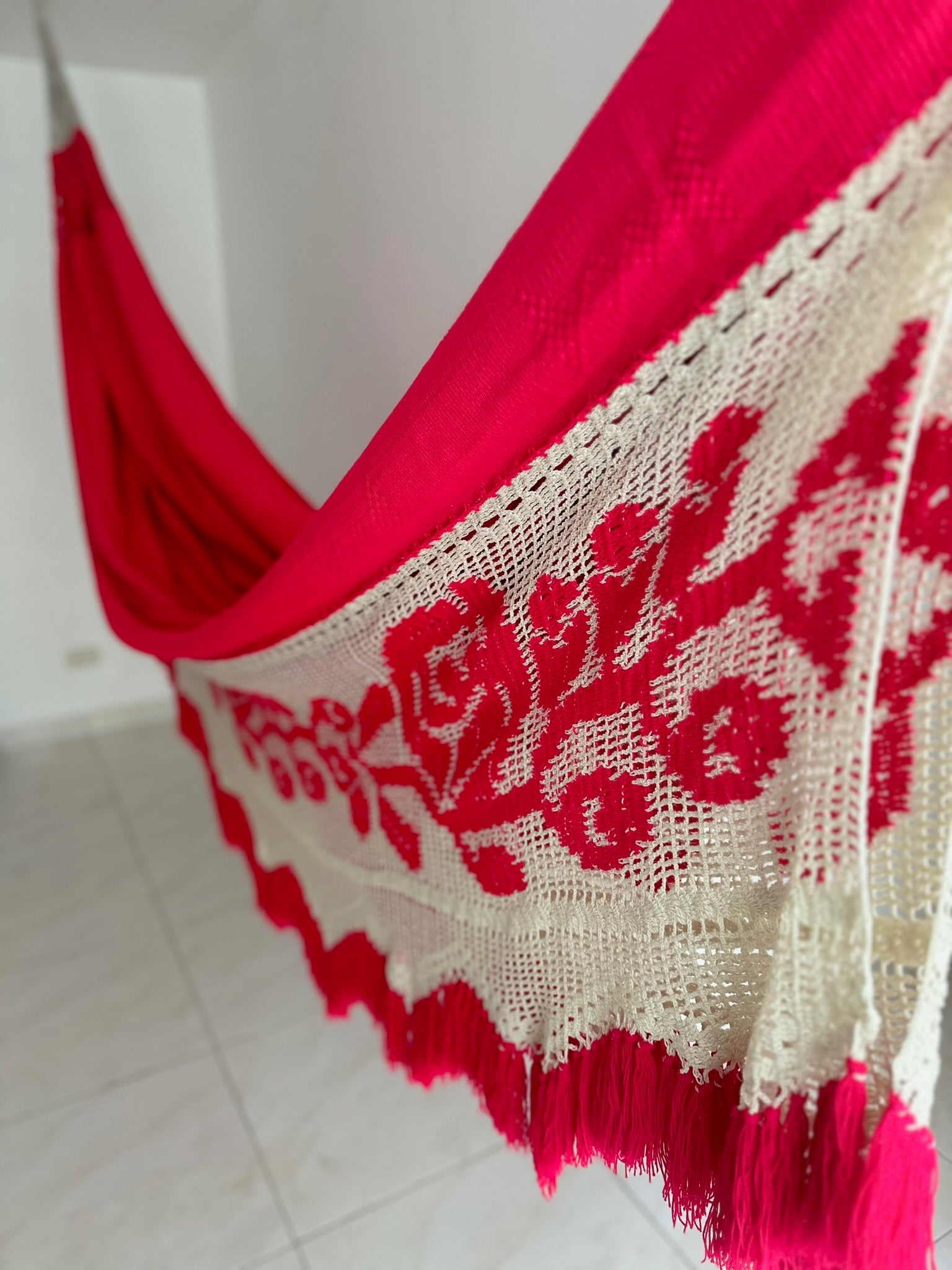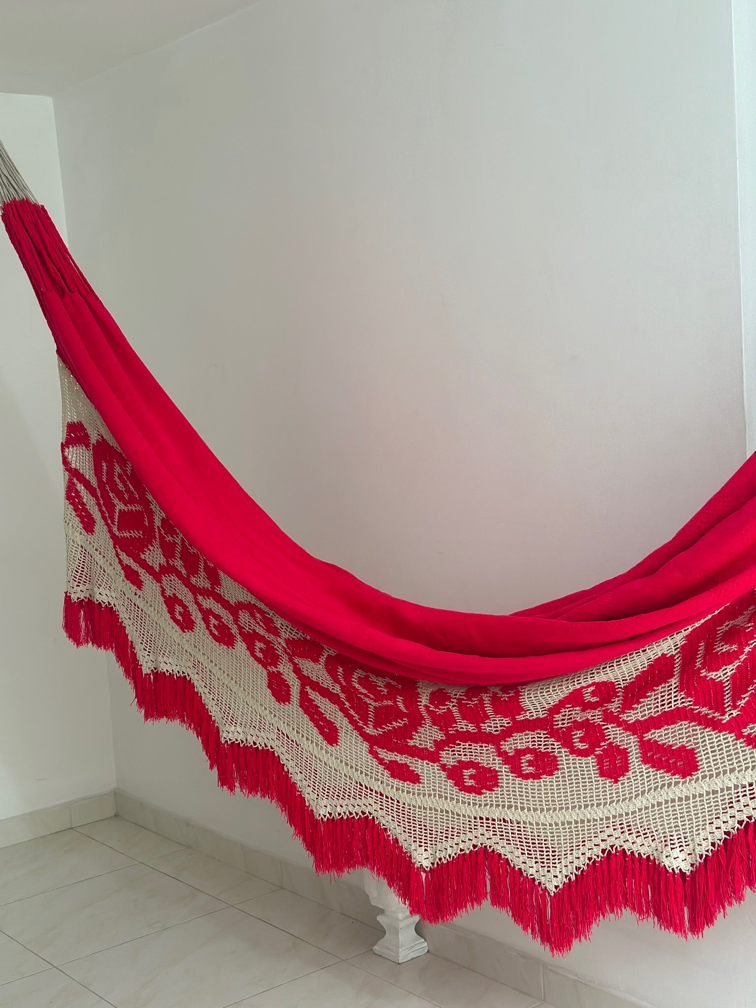 Añade un toque de autenticidad y confort a tu vida con la hamaca Florencia, una verdadera obra de arte textil que podrás disfrutar por años.