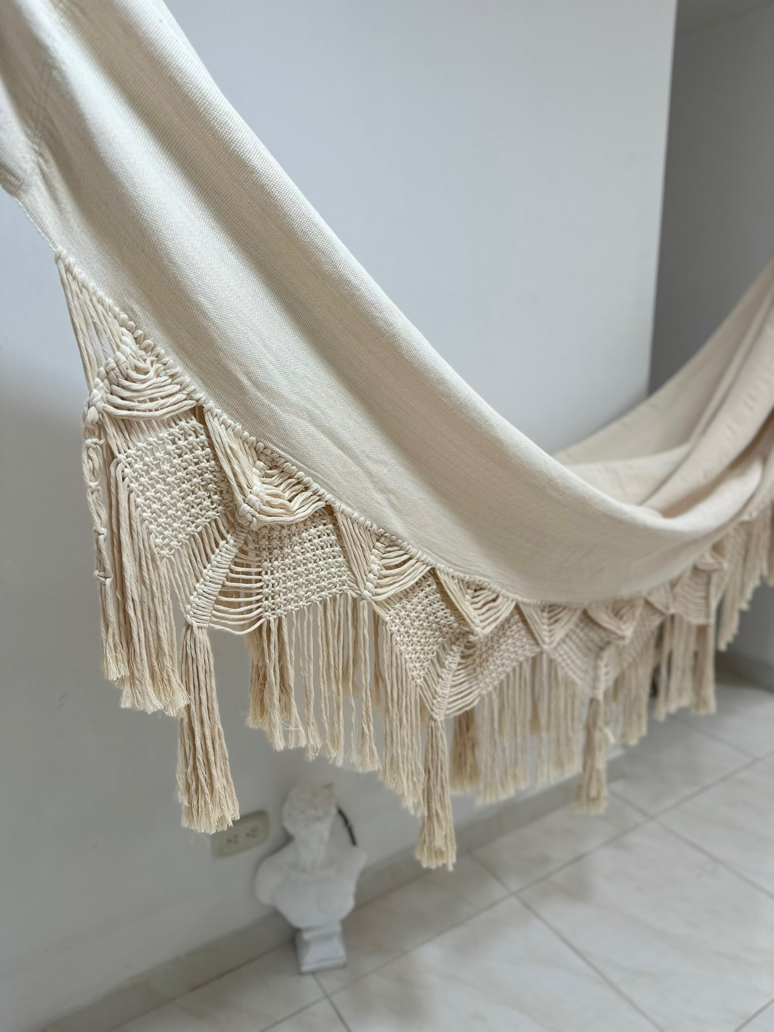 Color: El tono crudo corresponde al color natural del algodón sin tintes. Si deseas personalizar tu hamaca con otros colores, no dudes en escribirnos por WhatsApp.