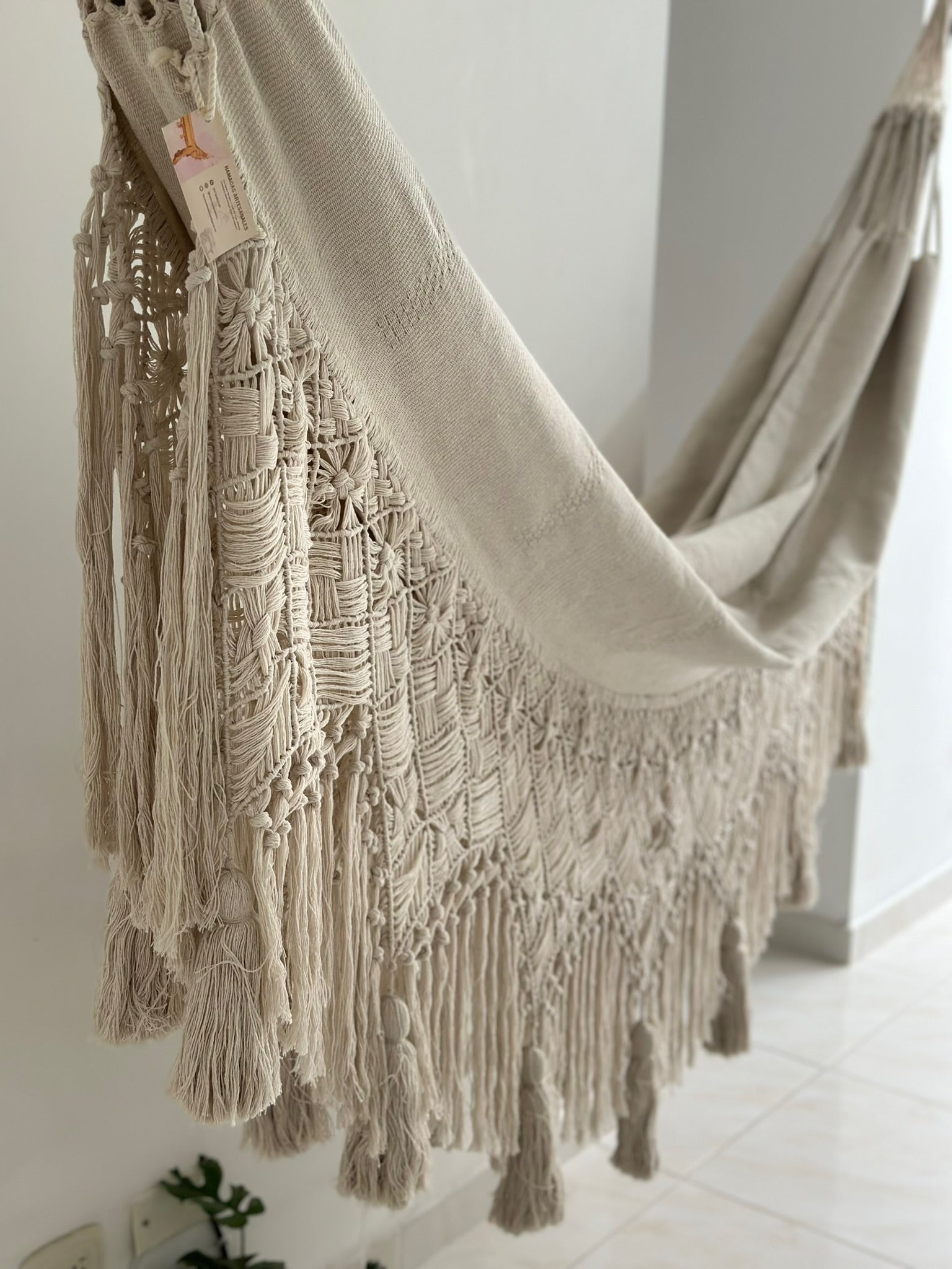 Color: El tono crudo corresponde al color natural del algodón sin tintes. Si deseas personalizar tu hamaca con otros colores, no dudes en escribirnos por WhatsApp.
