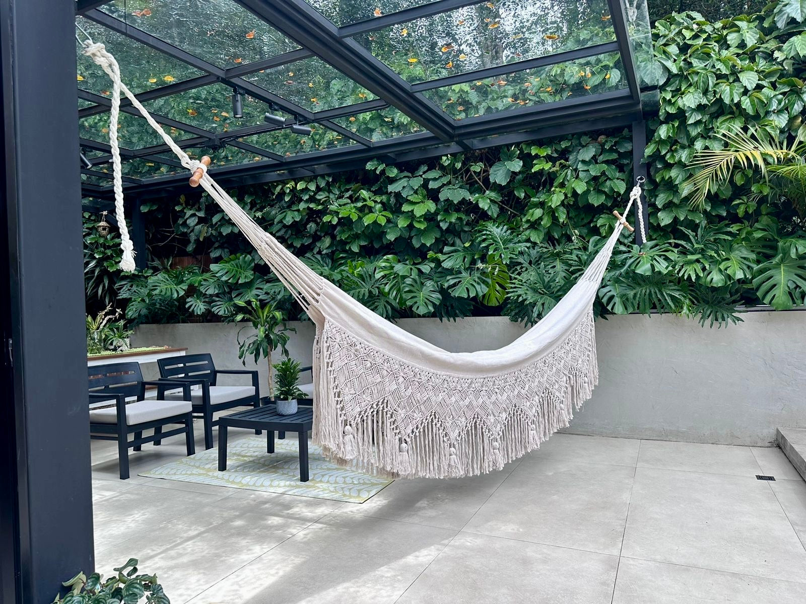 La hamaca Savanna no es solo un lugar para descansar, sino una obra de arte textil que conecta tradición y confort, brindándote una experiencia única en cada uso.